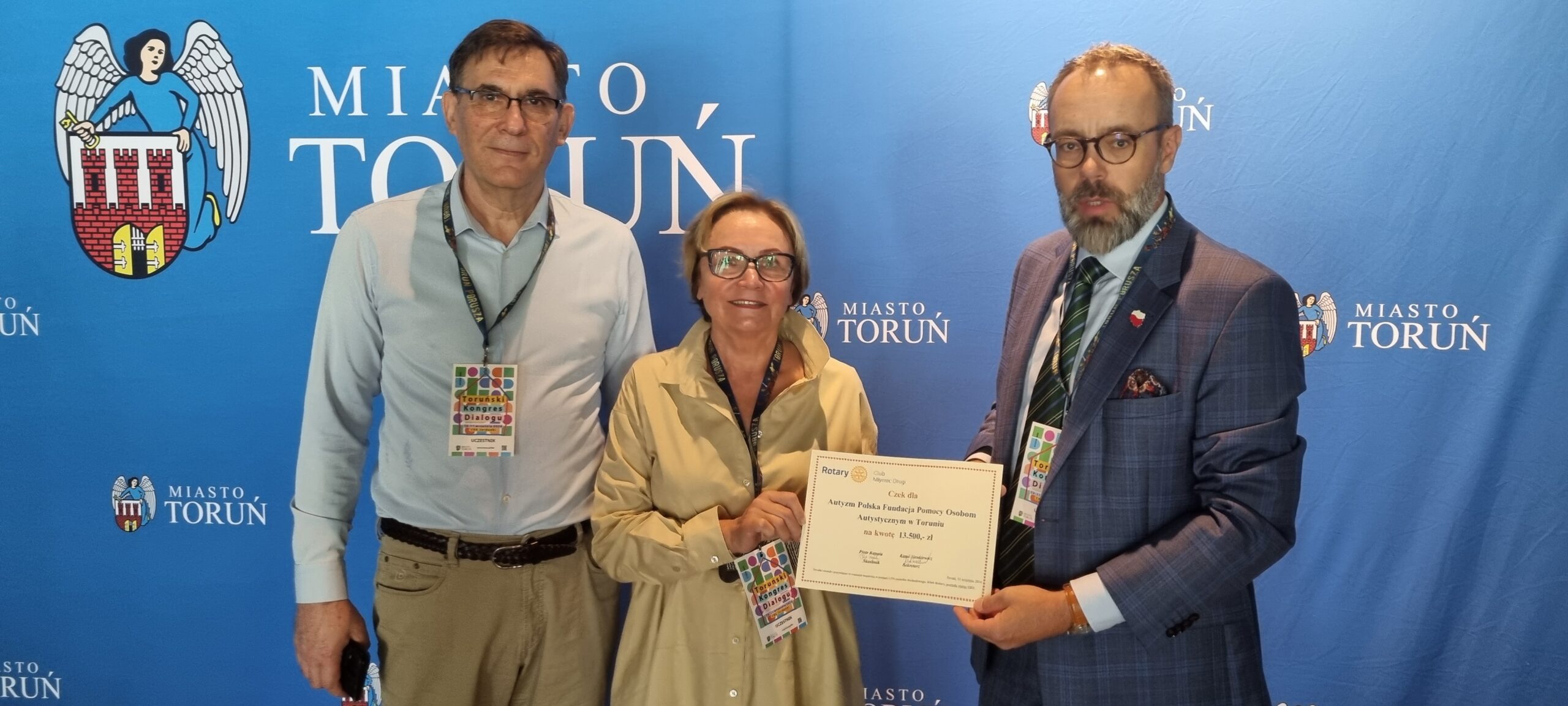 Klub Rotary Młyniec Drugi zbierał środki z 1,5% podatku dochodowego. Celem zbiórki było wsparcie toruńskiej Fundacji Pomocy Osobom Autystycznym. W dniu 11 września 2024 r. czek na kwotę 13.500 zł został przekazany Zarządowi Fundacji.